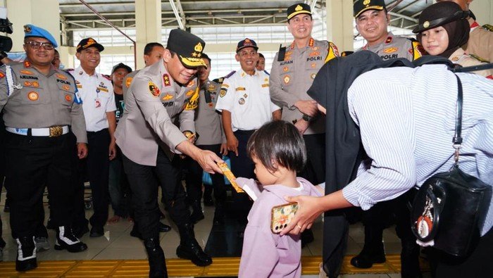 Suasana hangat terlihat saat Irjen Asep menyapa para pemudik di ruang tunggu dan area bermain anak. Tak hanya menyapa, jenderal bintang dua ini juga membagikan cokelat kepada anak-anak dan bingkisan makanan kepada para penumpang yang bersiap berangkat.